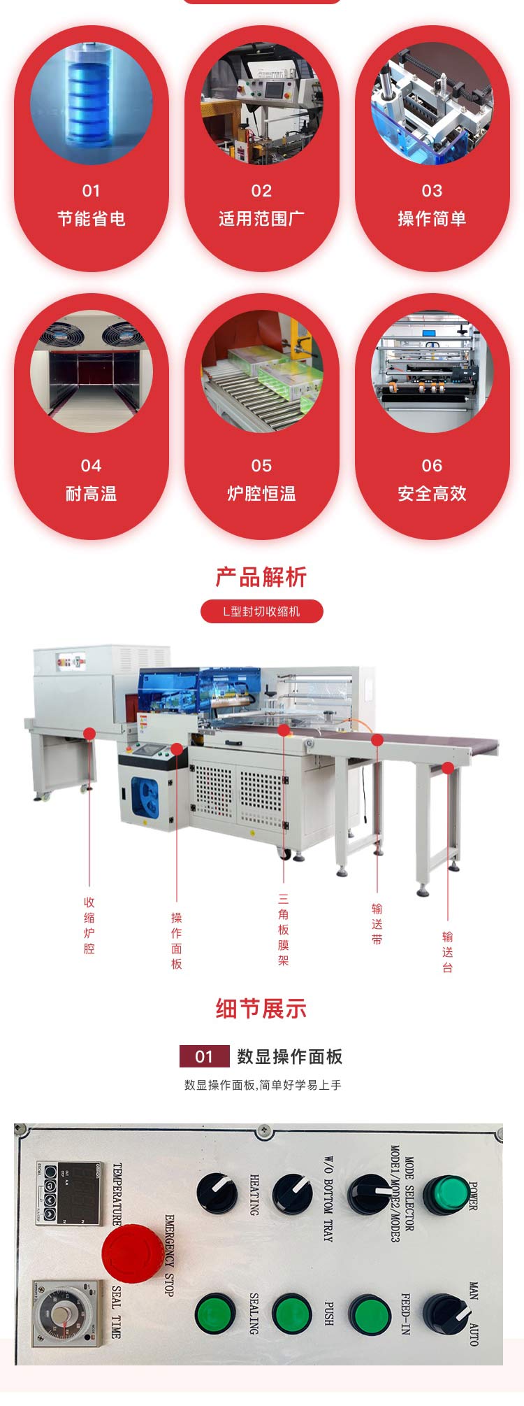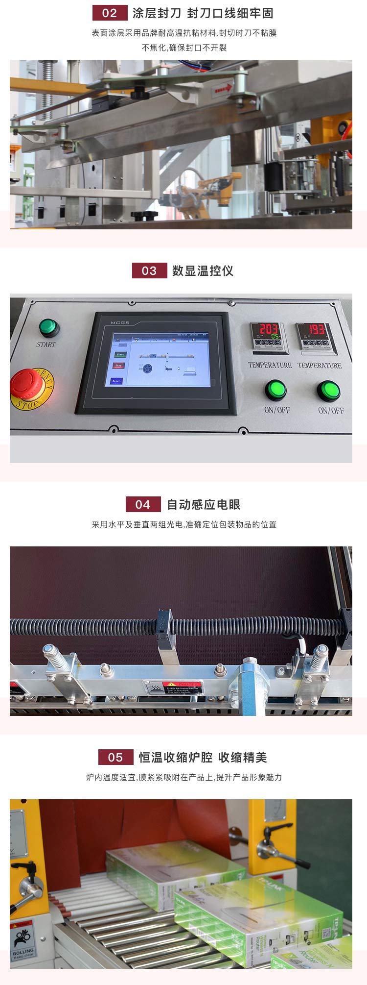 優(yōu)勢:耐用零部件,封切收縮一步到位,經(jīng)濟省錢