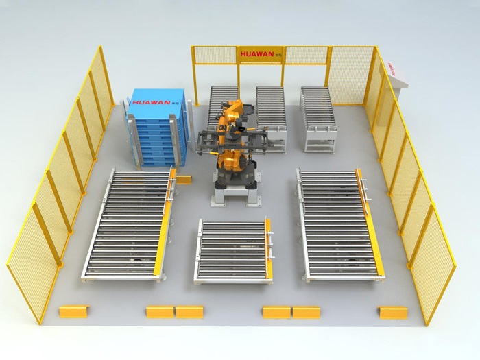 介紹:本機適應于化工、飲料、食品、啤酒、塑料、空調等生產企業(yè)對紙箱、袋裝、罐裝、盒裝、瓶裝等各種形狀的成品進行裝箱和碼垛。